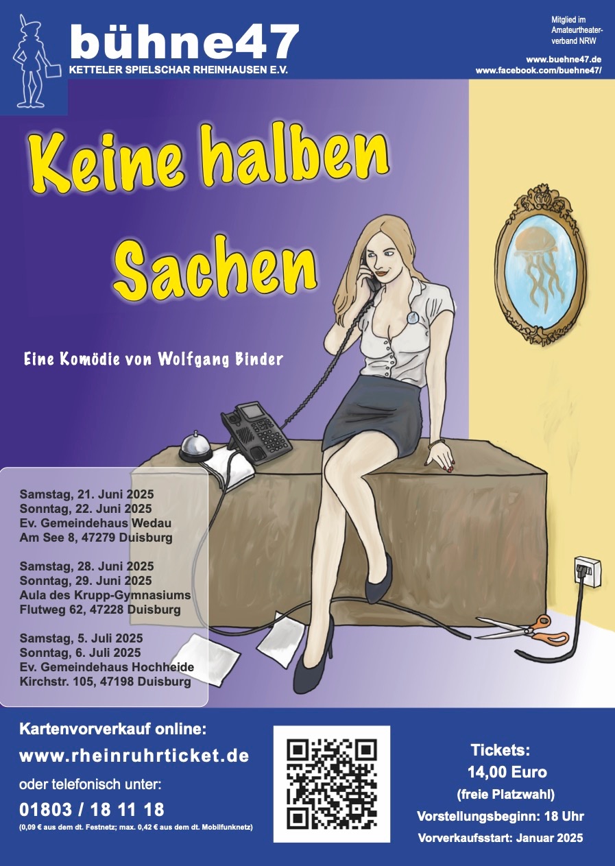 In 2025 sind wir in Rheinhausen, Wedau und Hochheide mit der Komödie „Keine halben Sachen“ zu Gast.