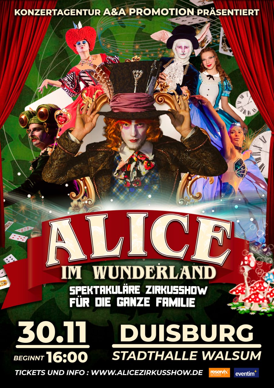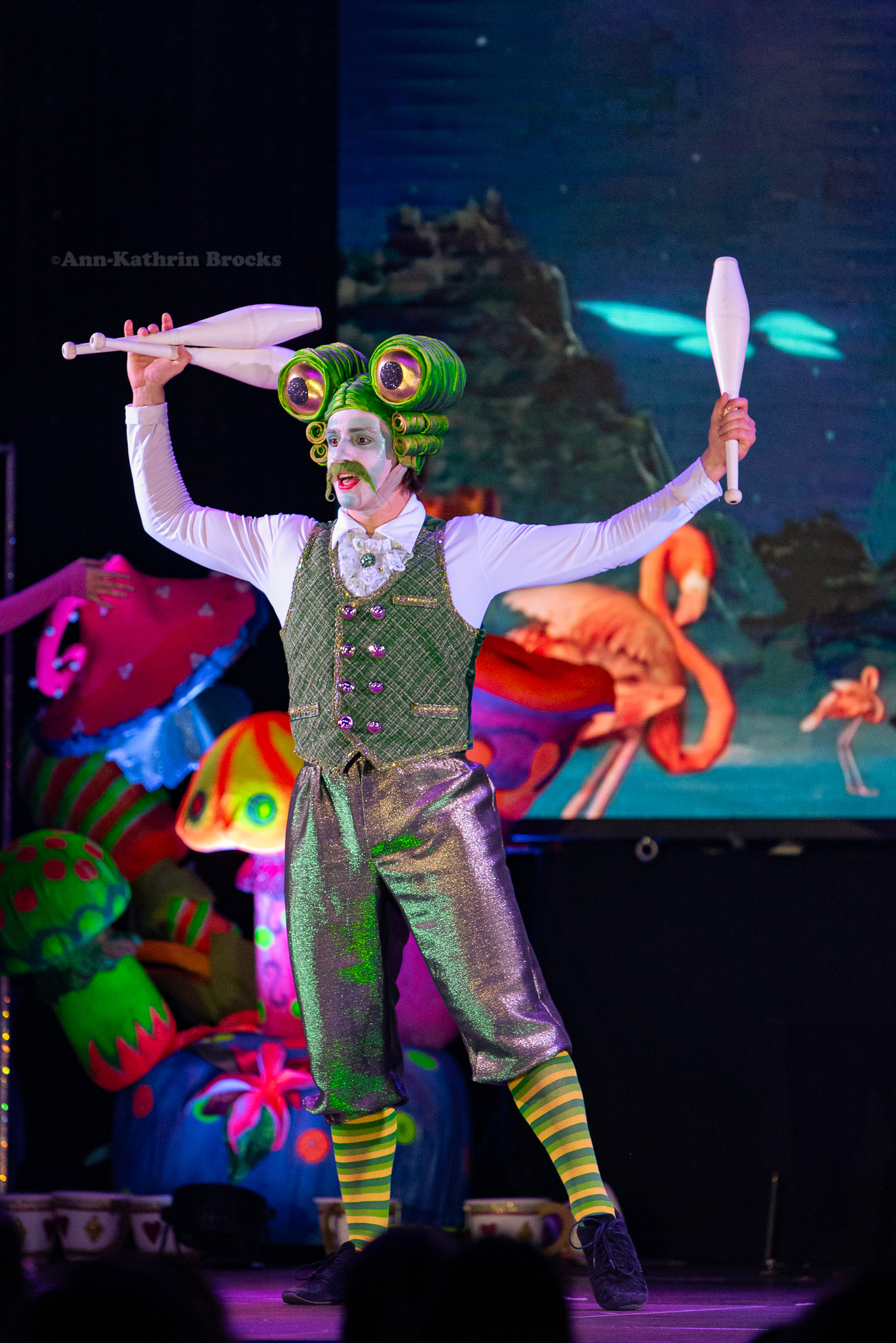 Auf der Bühne – eine aufregende Theater- und Zirkusshow, die auf der beliebten Geschichte von Alice basiert.